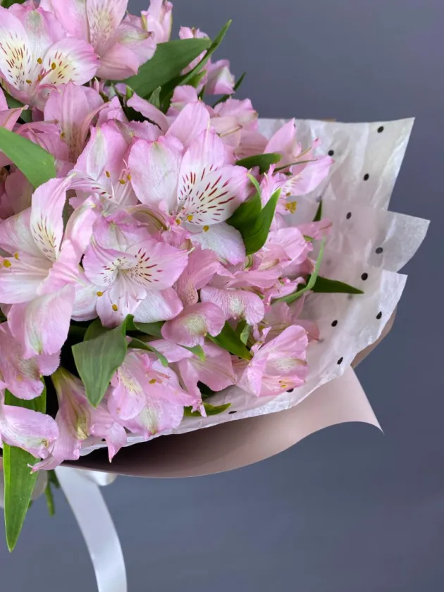 Иногда элегантность заключается в простоте. Монохромный букет из альстромерий одного оттенка может выглядеть очень изысканно и стильно.