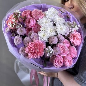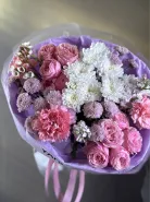 Сборный букет с кустовыми розами «Розовое вино»