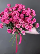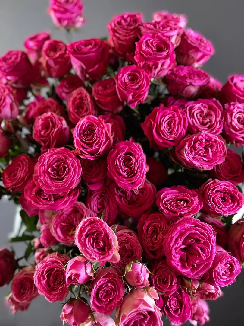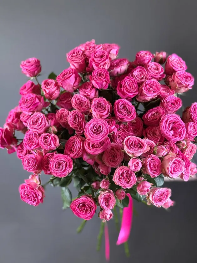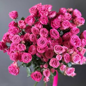Насладитесь бесподобной красотой с нашим букетом из малиново-розовых кустовых роз. Эти пышные и выразительные цветы создают атмосферу страсти и элегантности, наполняя каждый момент яркостью и теплом.