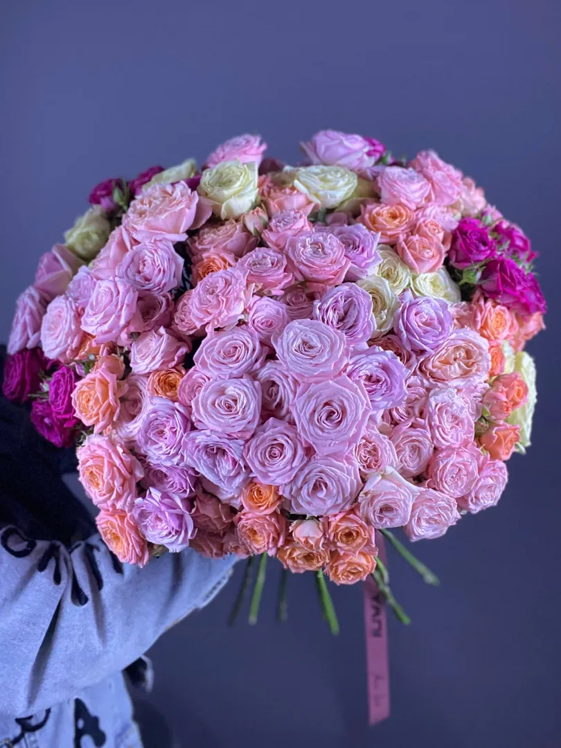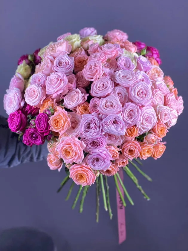 Окунитесь в мир изящной красоты с нашим эксклюзивным букетом. Нежные кустовые розы в пастельных тонах создают непревзойденную гармонию и восхищают своей грациозностью. Идеальный выбор для утонченных натур и особых случаев: романтических свиданий, свадеб или признаний в любви. Подарите нежность и тепло вместе с этим великолепным флористическим шедевром!